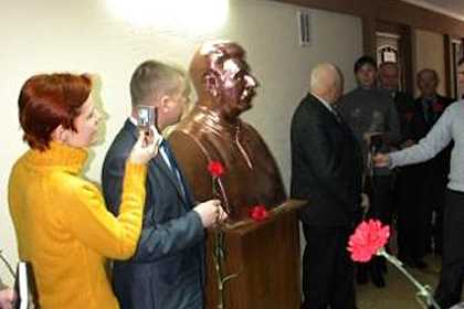 Где именно установлен памятник, не уточняется. Судя по имеющимся фотографиям, бюст советского вождя разместили в каком-то помещении.