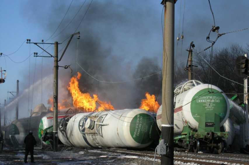 Пожар железнодорожных цистерн на перегоне Удачное - Межевая Красноармейского района Донецкой области ликвидирован 2 января 2014 г. в 18:20.