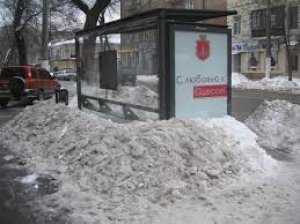 Несмотря на то, что центральные проезжие части во всех районах города уже расчищены, на некоторых остановках еще наблюдаются кучи снега.