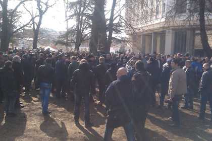 Сторонники оппозиции пытались провести рядом с парламентом акцию «против отделения Крыма от Украины», однако им помешали около ста молодых людей, назвавшихся активистами «Народно-освободительного движения». Взявшись за руки, они оттеснили протестующих к скверу Победы.