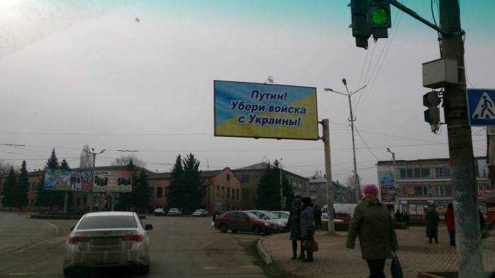 В Алчевске появилось сразу несколько биллбордов "Нет войне", "Путин, убери войска с Украины", "Украина едина и неделима".