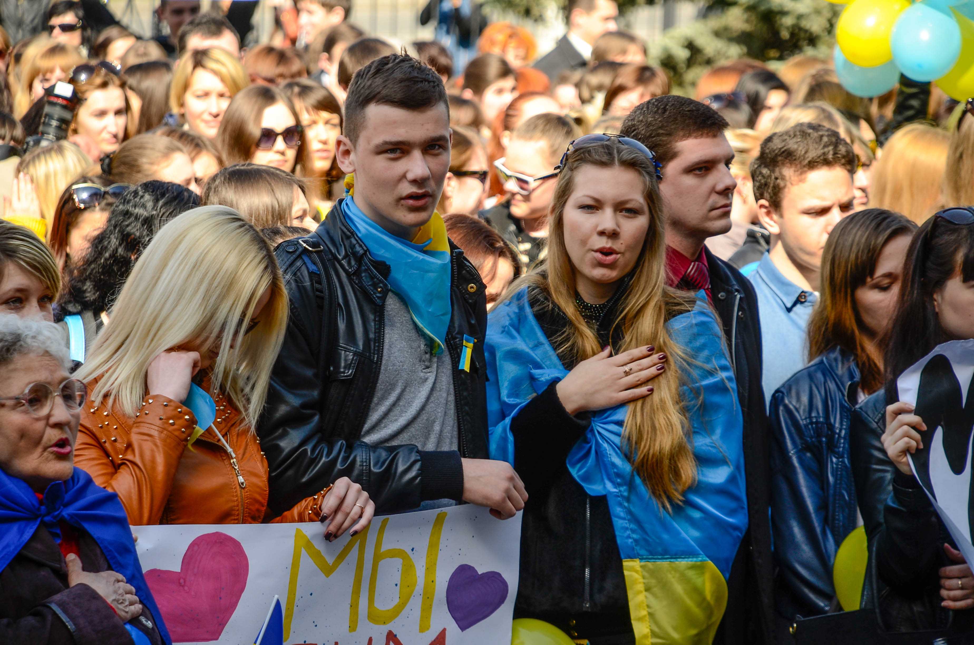 Студенты вышли с национальной символикой Украины и плакатами. Свой мирный протест, происходящим событиям на Востоке, молодежь выразила в лозунгах. Все они посвящены мирному разрешению конфликта и единству украинского народа.