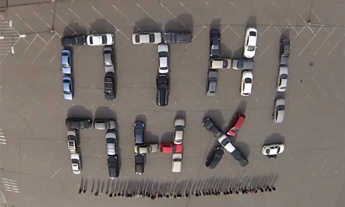 Днепропетровские автомобилисты написали "письмо" президенту Российской Федерации. Обращение к Путину было написано автомобилями, которые были выставлены в виде уже знаменитого слогана "ПТН ПНХ".