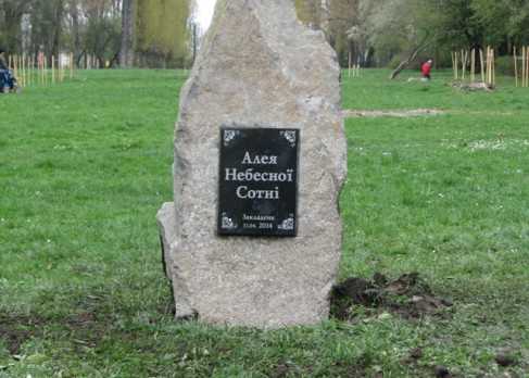 В Левандовском парке Львова, на Аллее Небесной Сотни, появился памятный знак, который установили лесоводы Львовщины. Это большой камень с табличкой, на которой надпись: «Аллея Небесной Сотни. Заложено 11 апреля 2014 года».