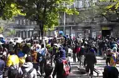 Помешать им пришли несколько сотен сторонников антимайдана с битами, щитами и в полной экипировке. Между противниками произошла потасовка.