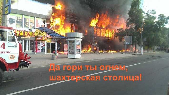 Террористы, захватившие ряд административ- ных зданий в г.Донецке, намерены в случае активных действий против них сил антитер- рористической операции сжечь город.Об этом на своей странице "Вконтакте" написал лидер российской профашистской общественной организации "Русское национальное единство" Александр Баркашов, пишет Еспресо.TV .