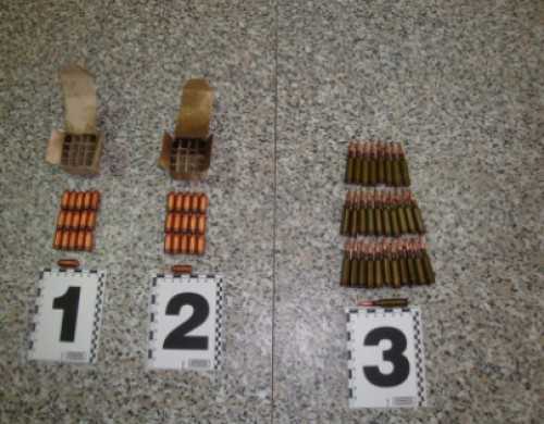 Уже в начале обзора на автобус сработала служебная собака. Во время проведения дальнейшего совместного с сотрудниками СБУ обзора, в одной из сумок было выявлено 32 патрона калибра 9 мм ПМ и 30 патронов калибра 5,45 мм к АК-74. Боеприпасы находились в двух стеклянных банках с мясными изделиями.