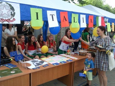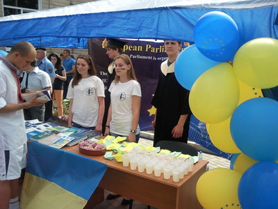 Среди посетителей «европейского городка» распространялись презентационные материалы. Все желающие могли не только развлечься, узнать множество интересного о странах Европы, но и получить полезную информацию относительно успехов евроинтеграции нашей страны, о возможности участия в образовательных программах академических обменов, благодаря чему можно получить высшее образование за границей.