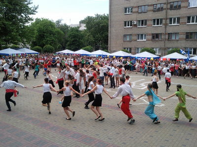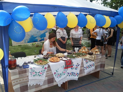 В соответствии с Указом Президента с 2003 г. в третью субботу мая в Украине отмечают День Европы. Его празднование уже стало доброй традицией для преподавателей, сотрудников, студентов ЗНУ и ЗНТУ. В этом году на территории Запорожского национального университета за ночь «вырос» настоящий «европейский городок». На площади работали тематические палатки, в каждой из которых гости праздника могли ознакомиться с любой страной Европы, ее традициями, попробовать блюда национальной кухни, получить этнографические сувениры и т.д.