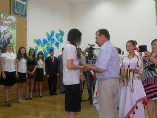 Городской голова Владимир Николаенко поздравил лучших выпускников с окончанием учебы и получением аттестата о полном общем среднем образовании с отличием. Торжественное мероприятие традиционно состоялось в большом зале Херсонского городского совета.
