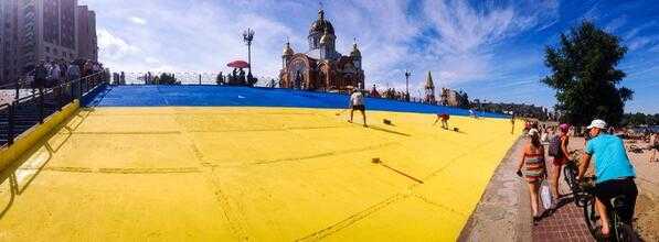 "Активисты перекрасили Оболонской набережной в цвета украинского флага. Теперь вечерний променад жителей района и пляжные будни хипстеров будут более патриотическими", - написал Тодорчук.