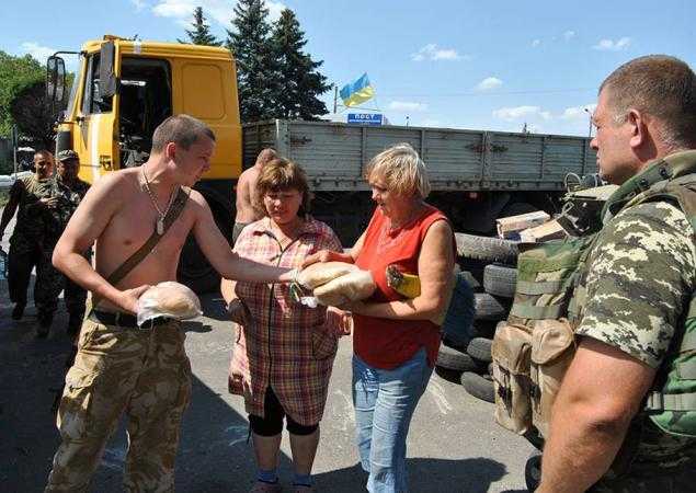 А также - привозят и раздают продукты. Так, на одном из блокпостов, прикрывающих донецкий городок Дебальцево, украинские воины организовали пункт бесплатной раздачи хлеба, круп, макарон, картофеля и других продуктов.