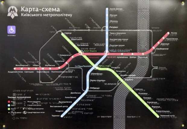 В вестибюлях шести пересадочных станций Киевского метрополитена появились рельефнографичные карты-схемы Киевского метрополитена, которыми могут воспользоваться, наряду с другими, пассажиры с нарушениями зрения и полностью незрячие. Карты изготовлены в соответствии с международными стандартами доступности для людей с инвалидностью и с учетом принципов универсального дизайна.