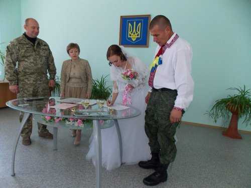 В городе Счастье зарегистрирован брак бойца добровольческого батальона "Айдар" Романа Эльмеза (позывной Линза) и местной жительницы Анастасии Исаевой.