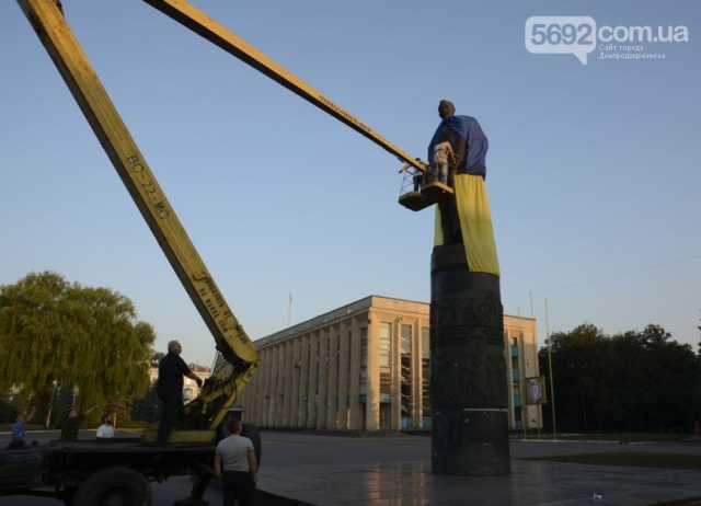Инициатором «украшательства» памятника Дзержинскому в украинский флаг и казацкую шапку выступил руководитель «Автомайдана» Днепродзержинска Максим Беспальчук.