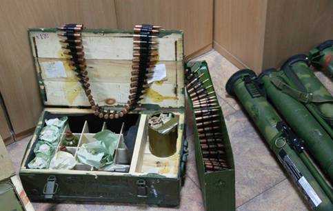 В доме главаря группы обнаружен оборудованный тайник, из которого изъяты четыре гранатомета типа «РПГ-26», «РШГ-2», «МРО», 7 гранат Ф-1 с запалами, дымовую шашку, 9 гранат для противотанковых гранатометов «ТБГ», «ПГ7С», «ПГ7М», пулеметную ленту, снаряженную сотней патронов, 9 пороховых зарядов типа «ПГ-7 ПРЕДМЕТОВ» и «ПГ-7ПМ», детонаторы, радиостанцию и почти пять тысяч патронов калибра 5,45 и 7,62 мм.