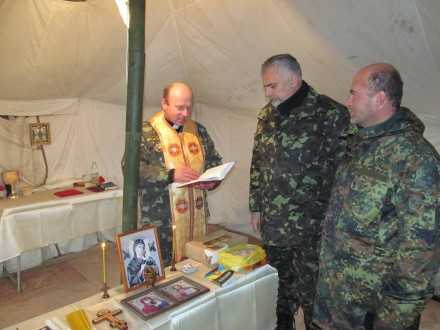 "Он общается на разные темы с бойцами и с помощью божьего слова пытается поднять их боевой дух. В отдельных случаях, по просьбе украинских воинов он проводит богослужения и причастия по христианским обрядам", - говорится в сообщении.