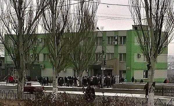 Несмотря на скромную сумму - 500 грн, пособий хватило не всем, сообщают пользователи в соцсетях. По их словам, выдача пособий проводилась в здании «ПриватБанка», символика в помещении была завешена флагами ДНР.
