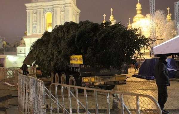 В воскресенье, 7 декабря, на Софийскую площадь привезли главную Новогоднюю елку. Новогоднее дерево высотой 24 метра подарила Киеву городская власть Ивано-Франковска.