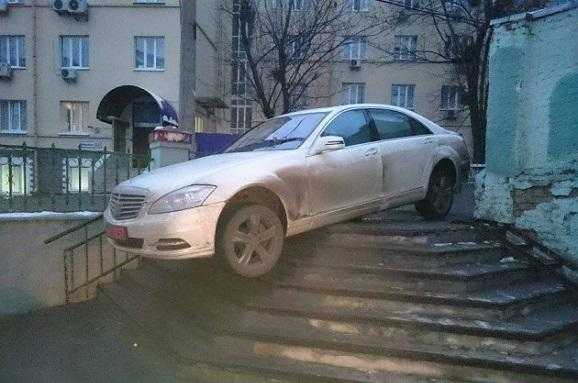В Киеве водитель "Мерседеса" умудрился припарковать свое авто на ступеньках пешеходной дороги, проходящей через дворы на улице Шота Руставели, пишет "Сегодня".