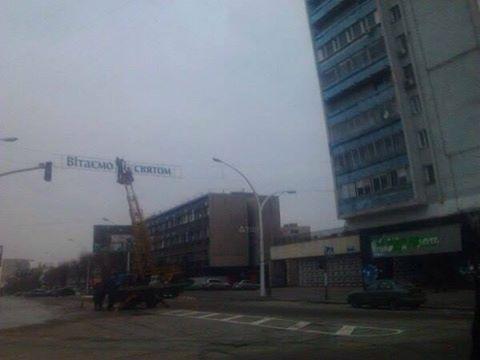 В Луганске демонтировали поздравительную вывеску, которая украшала главную площадь города не один год.