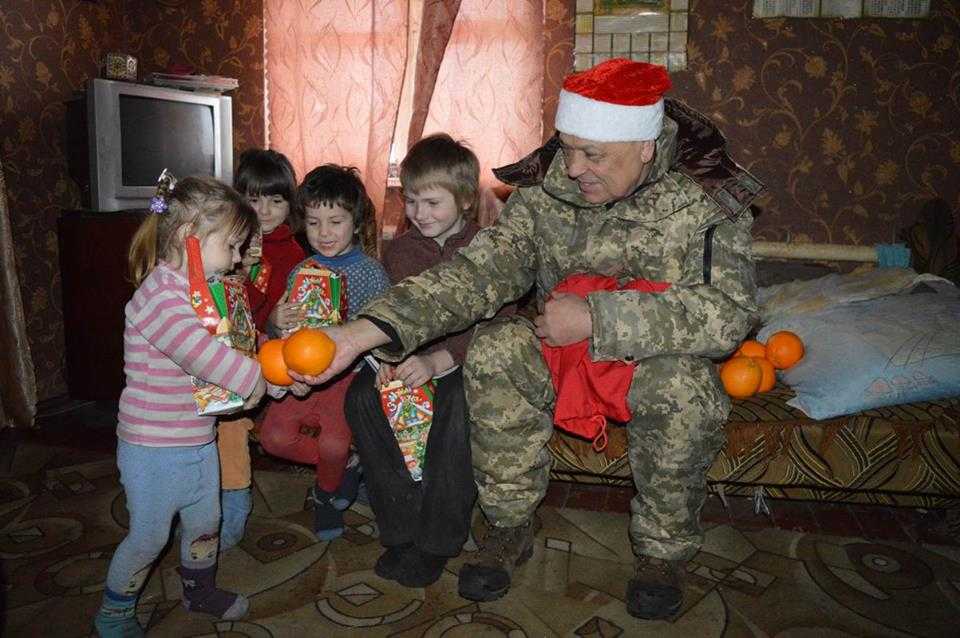 Помолился за мир на Донбассе. А дальше выполнил приятную функцию - без предупреждения пришел в гости к многодетной семье и вручил детям подарки. Младшая Аленка (ей 2 года) сначала не хотела подходить, насупленно смотрела сбоку - не очень понравился ей Дед Мороз в камуфляже. Но дальше оттаяла, подошла, начала улыбаться. Такая забавная, в разных носках..."