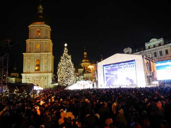 По подсчетам организаторов, более 40 тысяч киевлян и гостей столицы встретили Новый год на Софийской площади рядом с Главной новогодней елкой страны.