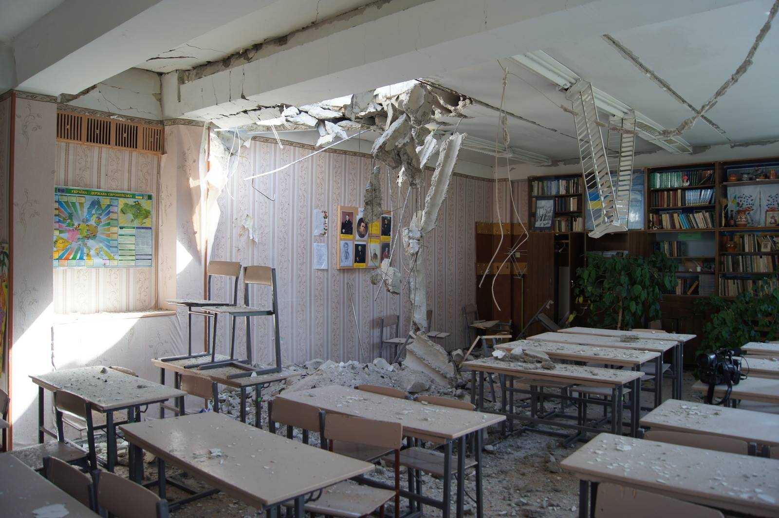 Прямое попадание снаряда разрушило практически половину здания школы-сада № 29. Это учебное заведение всегда имело особое значение для города, здесь была создана база для занятий детей с нарушением опорно-двигательного аппарата. Поэтому городская власть, коллектив учреждения и родители приложили максимум усилий, чтобы дети могли продолжить занятия.