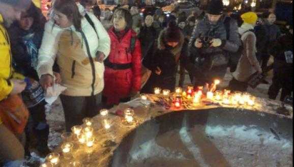 Участникам акции раздавали таблички с надписью "Je suis Charlie", активисты зажгли свечи. Они выстроилась в колонну и прошли шествием до Французского культурного центра. Там люди поставили свечи, которые несли с собой и развесили плакаты.