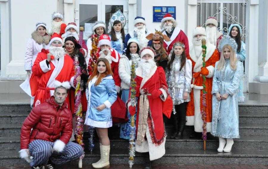 11 пар Дедушек Морозов и Внучек Снегурочек, в сопровождении других сказочных персонажей, выстроились в колонну и проследовали по Советскому проспекту до здания исполкома, весело поздравляя встречных прохожих и водителей с праздниками. Учащиеся Северодонецкого ВПУ, СТИ, химико-механического техникума, СОШ №16, №4, профессионального лицея, СИ МАУП и члены скаутской организации «Пласт» в этом году решили начать свой благотворительный марафонский забег с посещения руководителей нашего города. Порцию новогоднего настроения и праздничные сувениры получили городской голова Валентин Казаков, его заместители, руководители отделов.