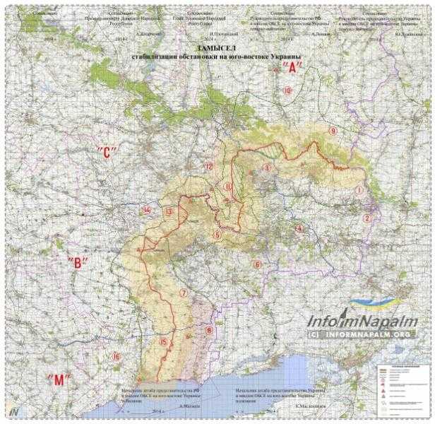 "Оригинал электронной версии карты был получен на условиях полной анонимности от источника из ближайшего окружения главы ЛНР Плотницкого и бывшего председателя фракции ПР А. Ефремова. На карте стоят отметки о сторонах, с которыми был согласован этот документ. Среди них фигурируют Плотницкий, представители украинской стороны, а также мониторинговой группы ОБСЕ", - сообщает informnapalm.org.
