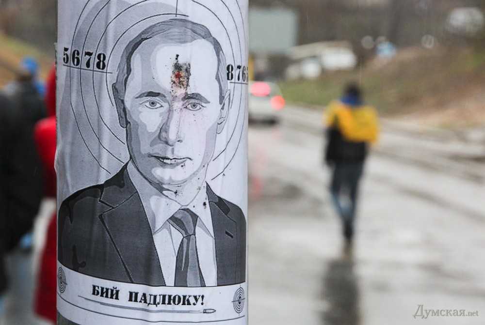 В отличие от ночной акции, сегодня участники проявили большую активность и агрессию — здание консульства закидали гвоздиками и поминальными венками. Пытались даже перекинуть гроб через забор, но этого им сделать так и не удалось — милиция всеми силами пыталась помешать гражданским. В ответ люди кричали «ганьба», а потом под выкрики «Путин, геть из Украины» подожгли гроб. Когда от него остался лишь пепел, объявили минуту молчания, которую назвали минутой радости, потому что «умер Путин».