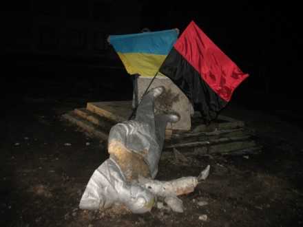 По их словам, снос “вождя мирового пролетариата” местные патриоты приурочили ко дню памяти Героев Крут.