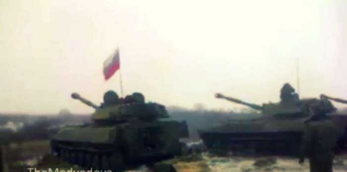 В интернете опубликовано видео обстрела позиций украинских бойцов террористами из так называемой ДНР. На самоходных артиллерийских установках развеваются флаги Российской Федерации, которая и в дальнейшем отрицает наличие ее военных на Востоке Украины.