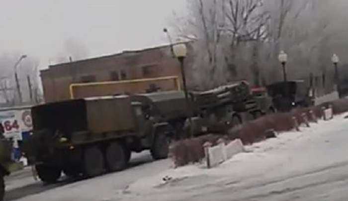 В оккупированный боевиками ДНР Харцызск, Донецкой области, въехала колонна систем залпового огня «Ураган». Перемещение российской военной техники зафиксировали местные жители и выложили видео в сеть.