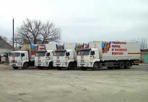 Тринадцатый «гуманитарный конвой» из России прибыл в Луганск. Поступившая жителям города «гуманитарная помощь» была разгружена на одном из складов Луганска силами волонтеров и работников «центра управления восстановлением».
