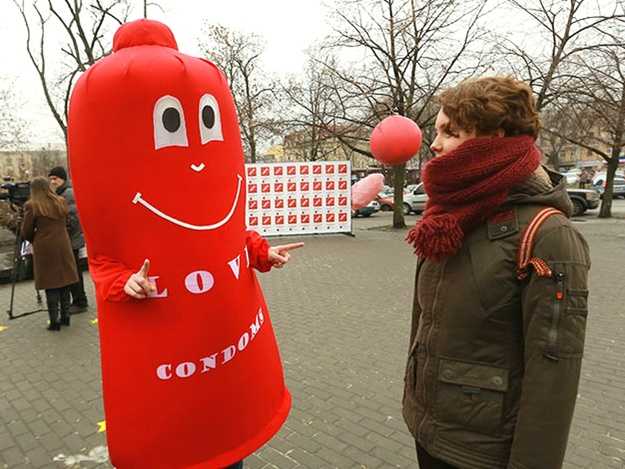В столице в международный день презерватива агитировали за здоровый образ жизни и призывали бороться со СПИДом. В ход пошло все музыка, плакаты и бесплатные презервативы.