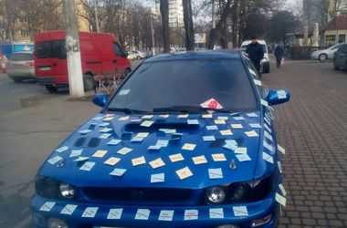Мы насчитали на капоте и по бокам машины около двух сотен стикеров, прохожие девушки то и дело останавливались, чтобы сфотографировать авто, а мужчины восклицали: "Ох, хорошо, что не фломастером написали и не гвоздем нацарапали".