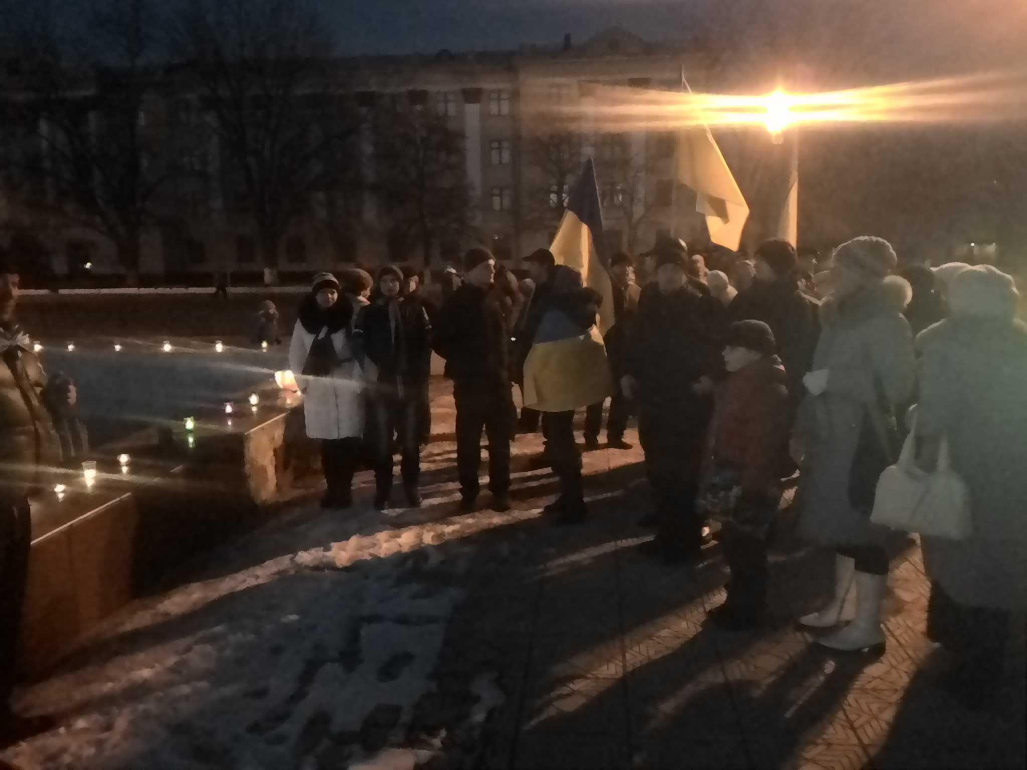 В Лисичанске состоялся флеш-моб памяти Героев Небесной Сотни. На мероприятии присутствовали около 50 человек.