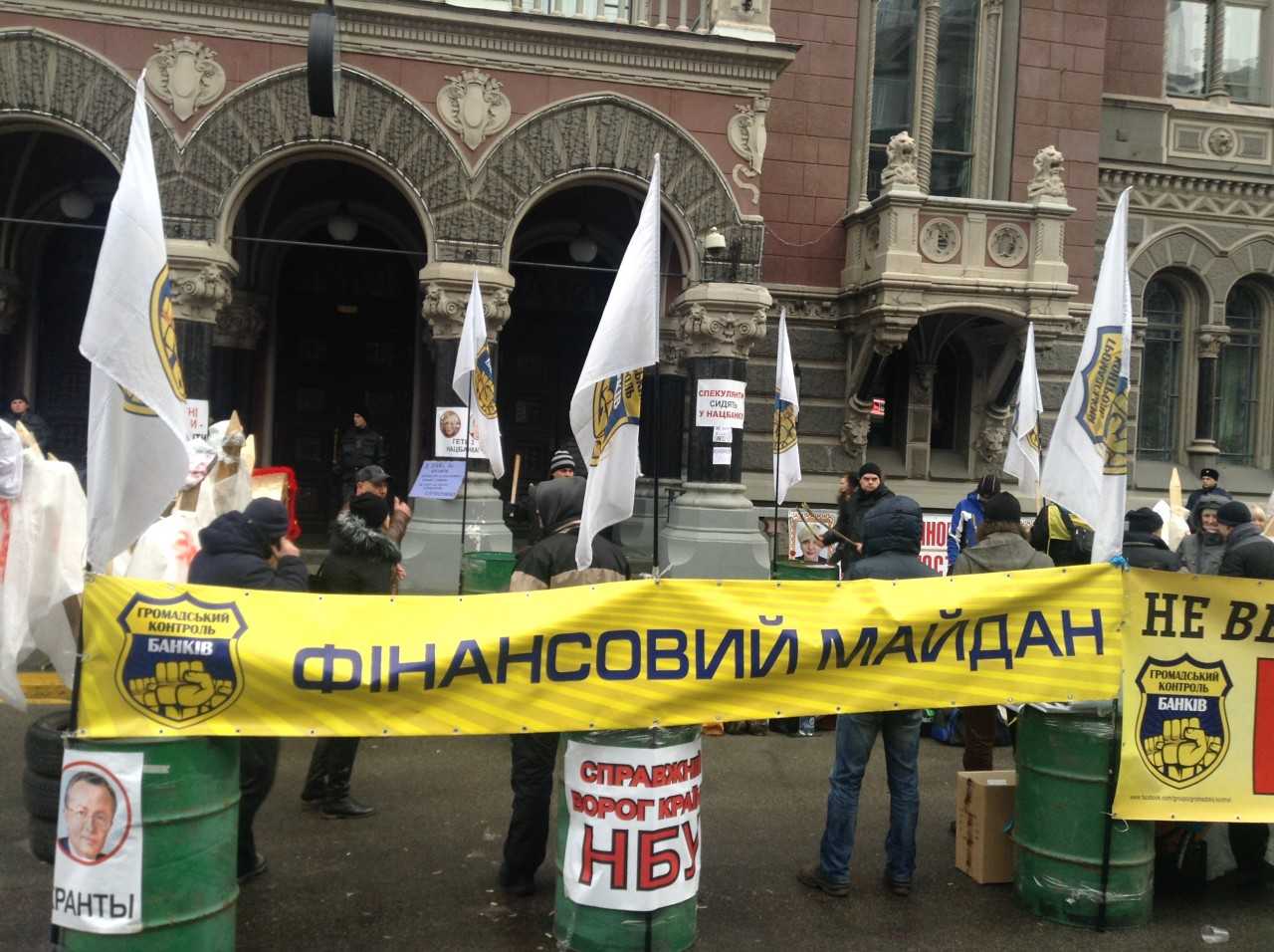 Участники акции отмечают, что будут стоять под стенами Нацбанка до тех пор, пока власть не услышит их.