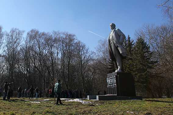 Во время прошлогодних бурных событий в парке им. М. Чекмана был снесен памятник Владимиру Ленину. Монумент весом около 22 тонн хранился на территории коммунального предприятия «Городская ритуальная служба», откуда был похищен неизвестными лицами.