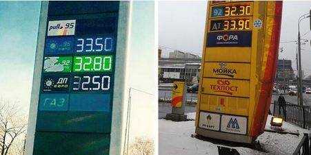 Сегодня в Донецке цены на бензин практически сравнялись с российскими, только в гривне. На АЗС литр А-95 сегодня стоит 33,50 грн.
