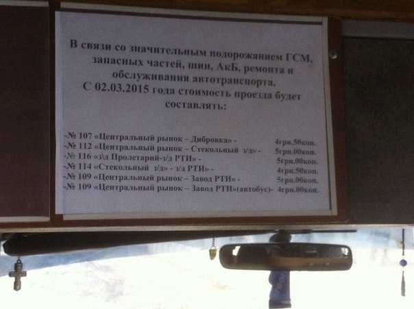 В Лисичанске в маршрутных такси появились объявления о повышении цен на проезд. Это касалось нескольких городских маршрутов.