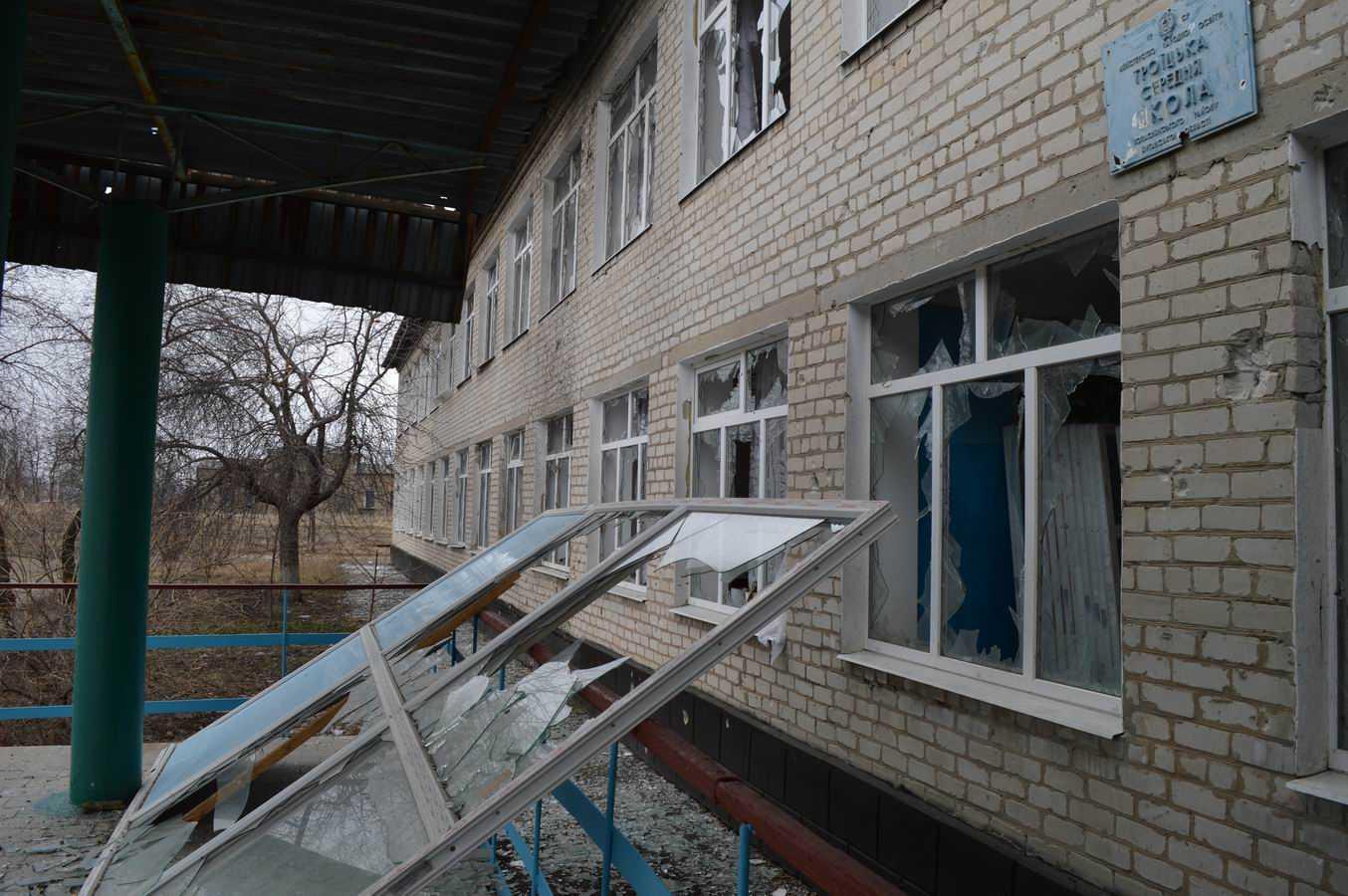 Три месяца назад после обстрелов боевиков была повреждена общеобразовательная школа с.троицкое Попаснянского района. Силами областной власти и волонтеров удалось оперативно осуществить ремонт, после чего школьники возобновили обучение. Однако с активизацией боевых действий на Дебальцевськом плацдарме Троицкое снова попало под обстрел из оружия разного вида, включая артиллерию, "Грады", минометы и танки.