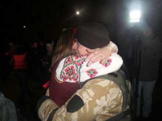 Прибытие ребят было запланировано еще в среду вечером, однако автобусы с бойцами уже традиционно задержались, и нацгвардейцы попали на базу только в пять утра. Тем не менее здесь их встречали родственники и простые одесситы, пришедшие поддержать украинских воинов. Вместе с бойцами в Одессу вернулся и котенок по кличке Псих.