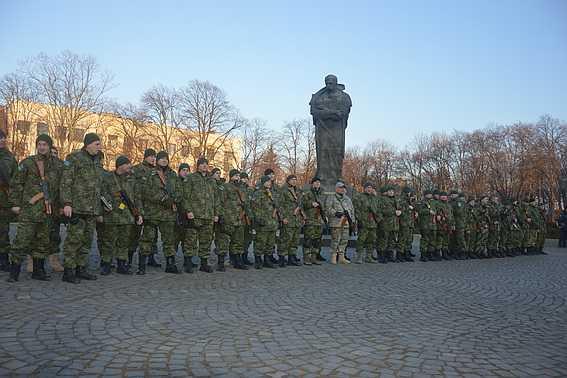 А поскольку сегодня еще и День рождения украинского гения Тараса Шевченко, то руководство сводного отряда положило к памятнику Кобзарю на пл.Народная корзину с цветами.