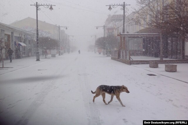 В Симферополе, утром 17 марта, начался снегопад. Как сообщает корреспондент Крым.Реалии , из-за усилившегося ветра и обильных осадков на улицах столицы наблюдается настоящая вьюга.