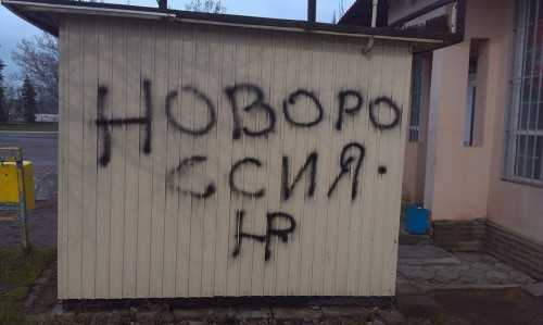 Сегодня, 19 апреля, ночью на зданиях мирного украинского поселка Марковка, расположенного на севере Луганской области, появились нарисованные краской из баллончика надписи «Новороссия».