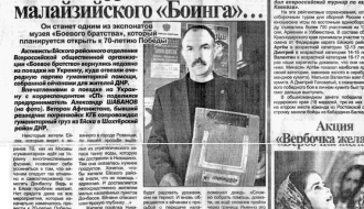 В начале апреля газета «Совет Призовья», сообщила, что жители поселка Рассыпное Донецкой области передали в Ейск фрагмент сбитого в июле прошлого года малайзийского «Боинга». Обломок планировалось включить в экспозицию, посвященную конфликту.