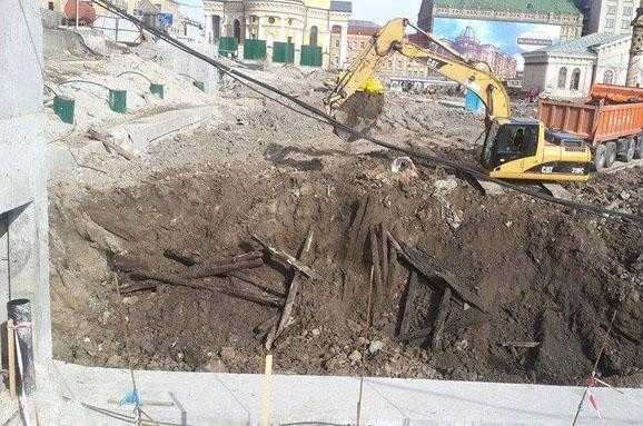 Найденную во время строительных работ на Почтовой площади улицу древнего Киева разрушили экскаватором.